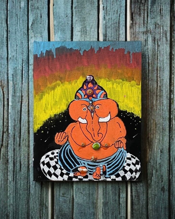 オレンジガネーシャ(誇りの魂) ◾️180㎜×140㎜ ◾️Acrylic / Posca on canvas