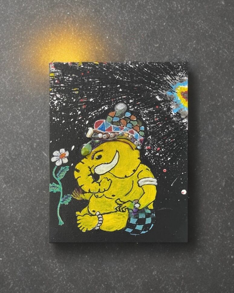 イエローガネーシャ(活発な魂) ◾️180㎜×140㎜ ◾️Acrylic / Posca on canvas